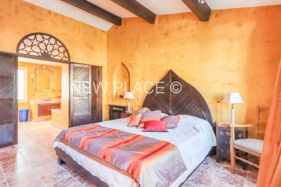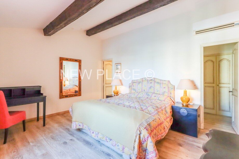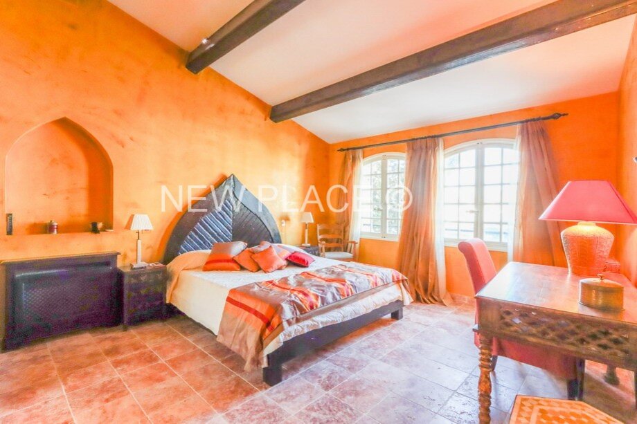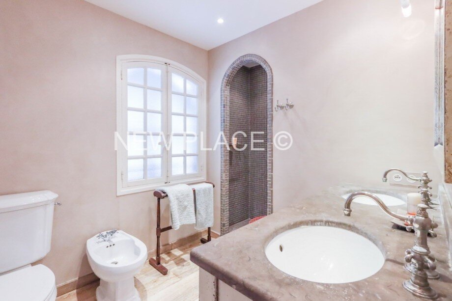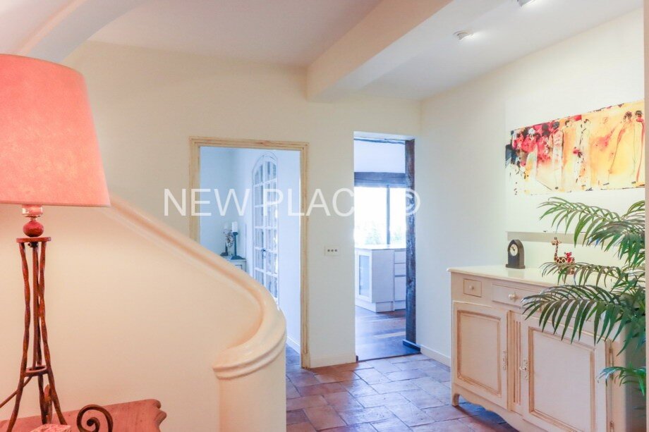 Im Obergeschoss: zwei Flügel, die über eine Doppeltreppe erreichbar sind: auf der einen Seite ein majestätisches Hauptschlafzimmer mit eigenem Bad, auf der anderen Seite ein zweites Hauptschlafzimmer mit eigenem Duschbad, zwei weitere Schlafzimmer und ein separates Duschbad mit WC.