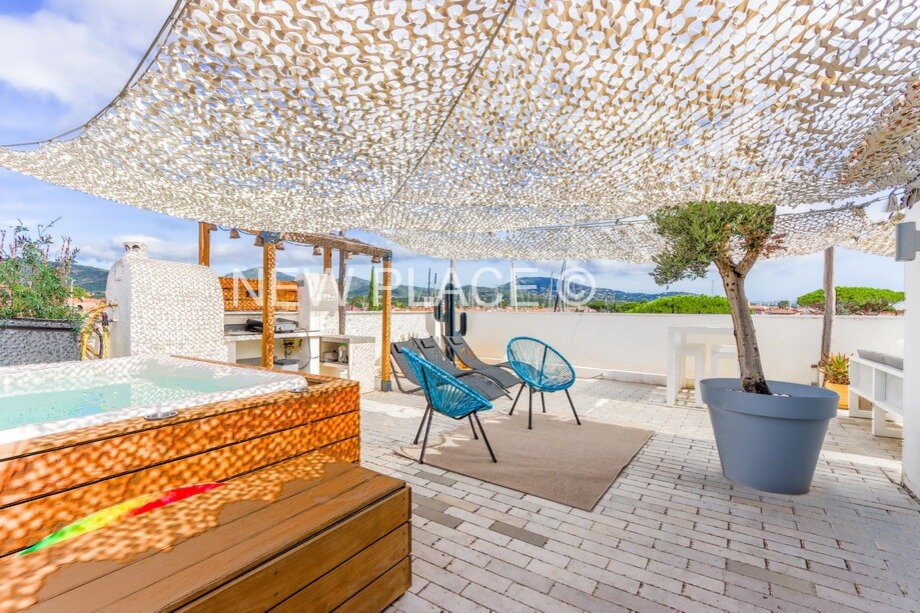 Selten in Port Grimaud – Hervorragende, ca. 65 m² große, komplett renovierte Duplex-Wohnung im obersten Stockwerk eines Gebäudes im Herzen von Port Grimaud Süd.